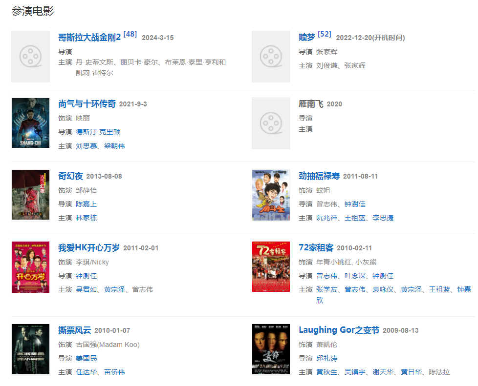 代表作品:東西宮略、巾幗梟雄之義海豪情、沖上云霄II、舞動全城