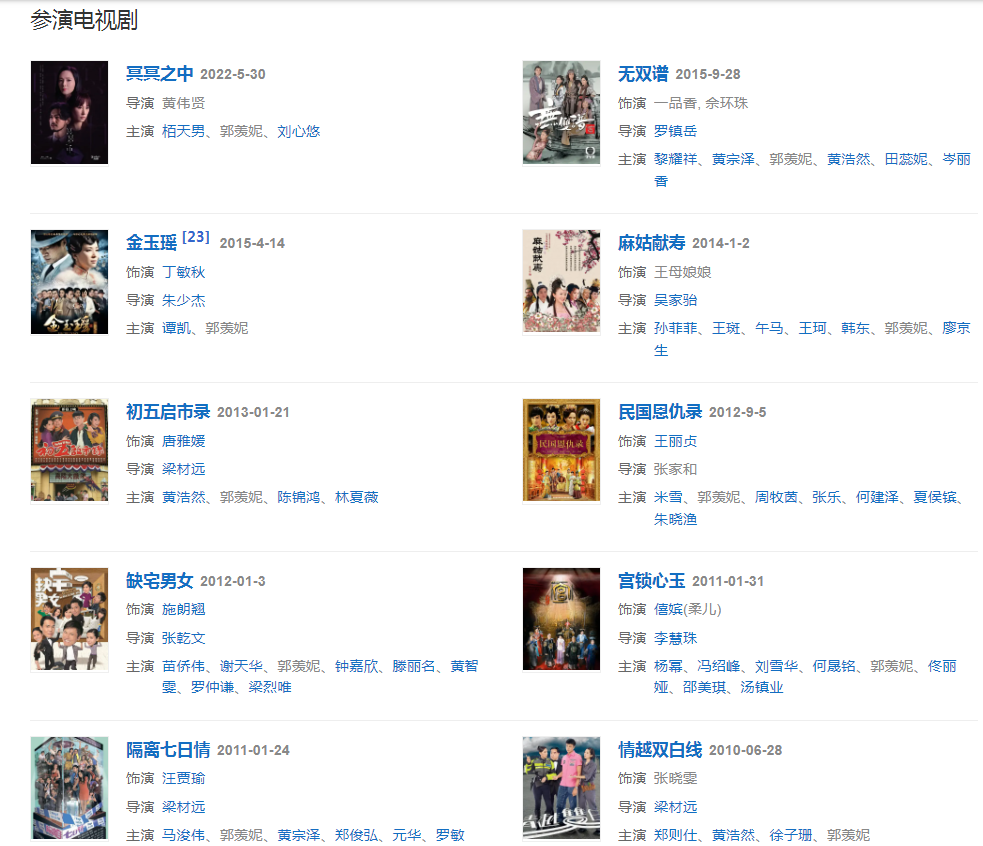 代表作品:尋秦記、牛郎織女、游劍江湖、古靈精探B、初五啟市錄、天涯俠醫(yī)、帝女花、匯通天下、無名天使3D、金玉瑤、缺宅男女、民國恩仇錄、隔離七日情、爭霸傳奇、翻新大少