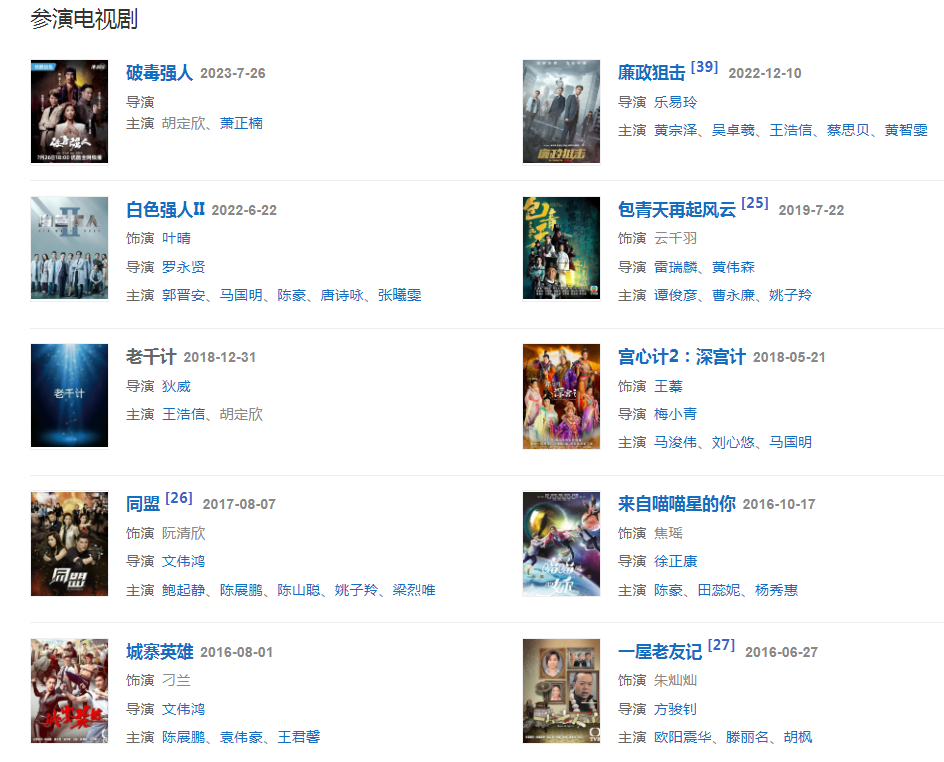 2023年,參加新京報與TVB聯(lián)合策劃出品特別欄目《跟著港劇吃美食》。7月26日,主演的電視劇《破毒強人》播出。