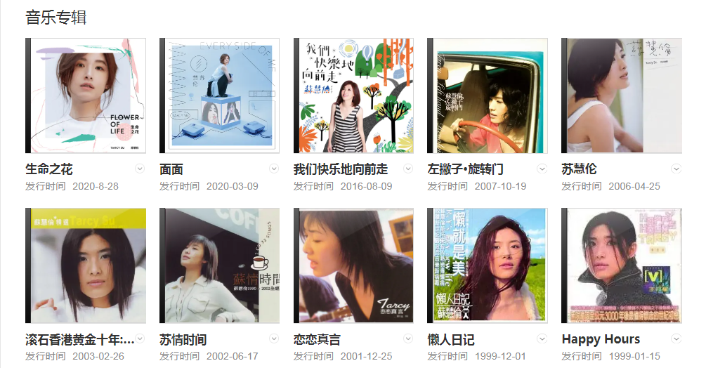 代表作品:鴨子、面面、戀戀真言、Lemon Tree、傻瓜、黃色月亮、在我生命中的每一天、被動(dòng)、追得過(guò)一切、左撇子、天下大亂、我一個(gè)人住、流浪神狗人