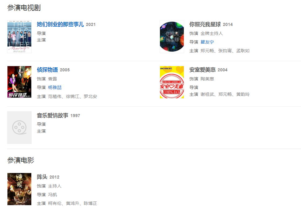 1997年,出演個(gè)人首部電視劇《音樂愛情故事》。