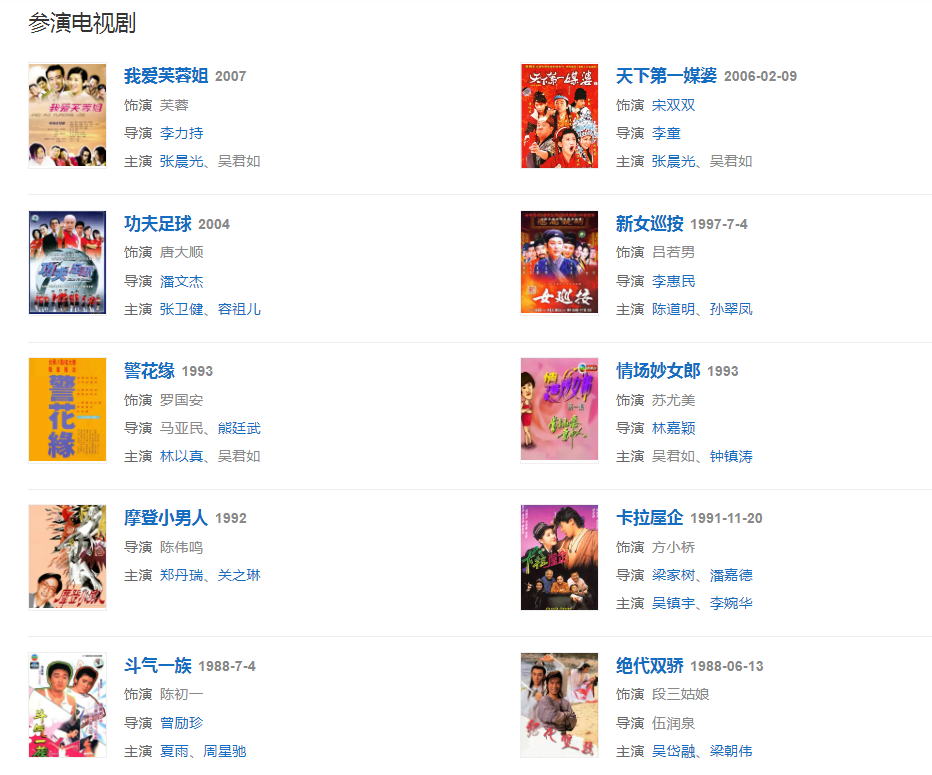 吳君如16歲進(jìn)入無線電視藝員訓(xùn)練班,畢業(yè)之后在TVB參演電視劇,