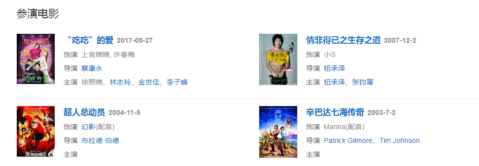 代表作品:Elephant Dee、康熙來了、娛樂百分百、大小愛吃、心機(jī)母女、戀愛達(dá)人、“吃吃”的愛