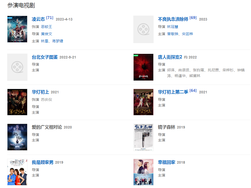 代表作品:熟女欲望日記、我的秘密花園、白色巨塔、敗犬女王、一八九五、愛上女主播、媽咪的男朋友、一把青、女王的誕生