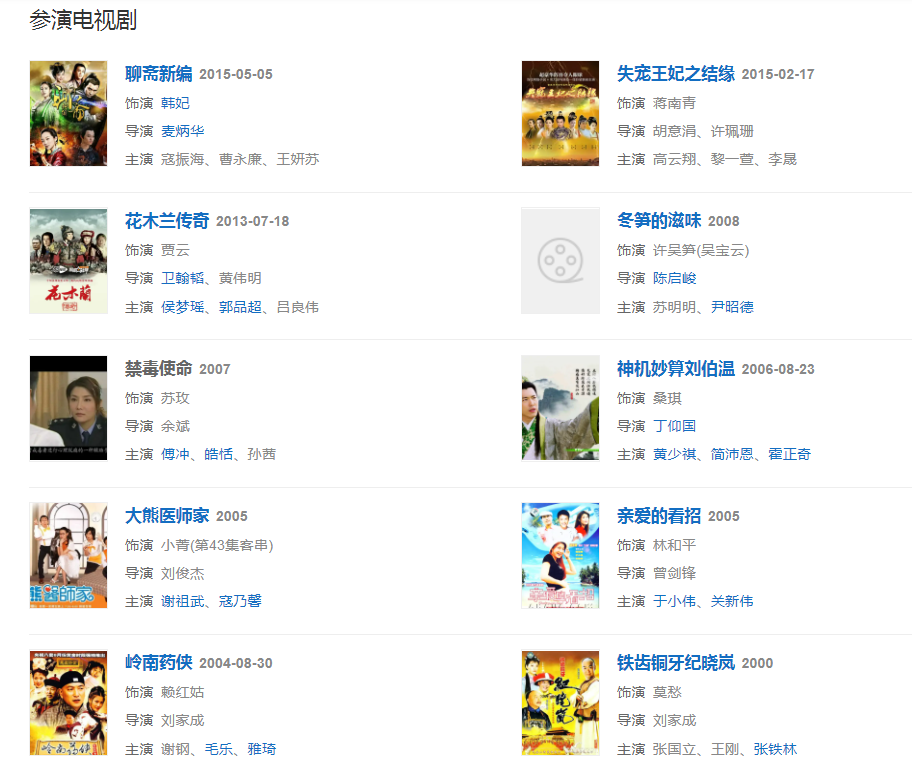 2000年在古裝劇《鐵齒銅牙紀曉嵐》中飾演莫愁。