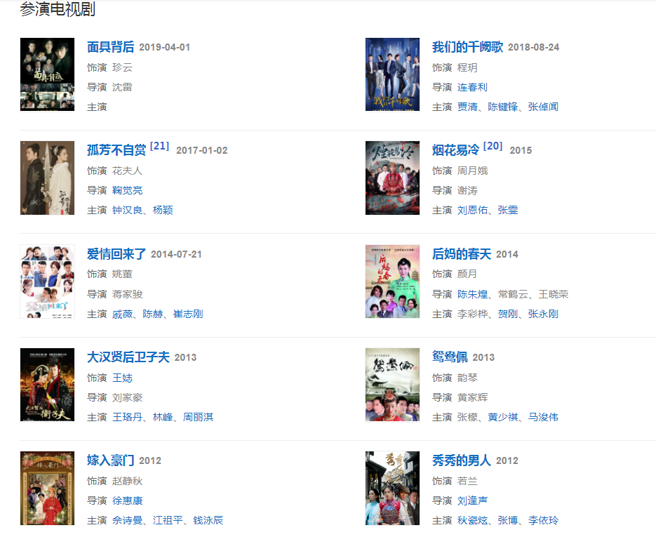 2017年1月,參演古裝巨制《孤芳不自賞》,飾演花夫人。