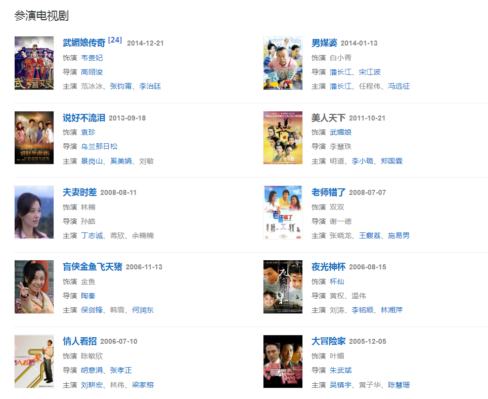 2014年12月因在《武媚娘傳奇》中飾演韋貴妃一角而再次獲得關(guān)注。
