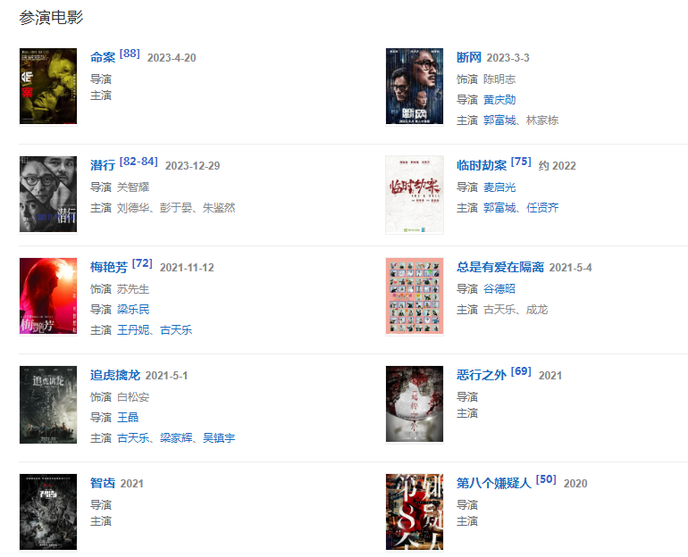 2022年,主演電影《命案》;9月9日,主演的網(wǎng)絡(luò)金融犯罪港片《斷網(wǎng)》上映,他在片中扮演卓家俊的上司陳明志。