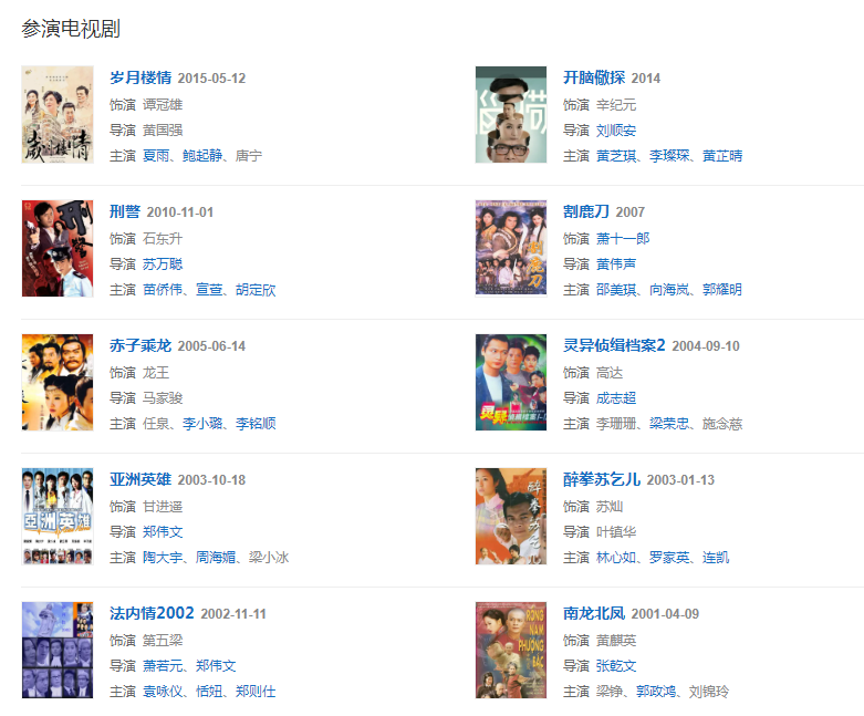 1998年參演的時裝劇《天地豪情》獲得香港電視劇年度收視冠軍 。
