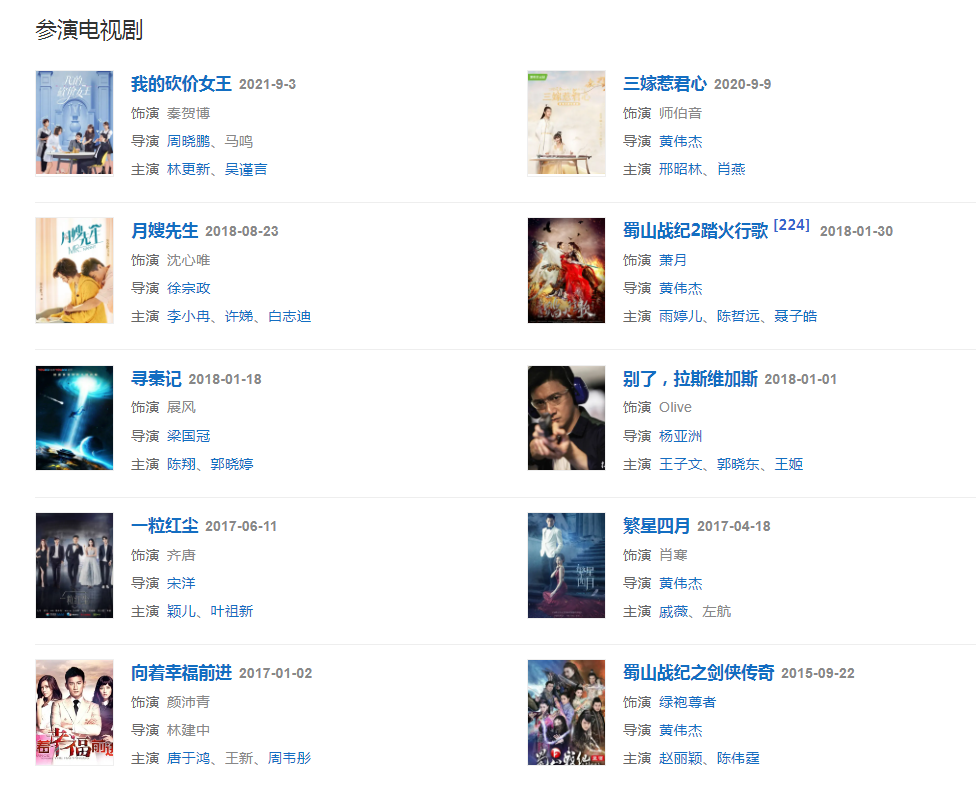 代表作品:祝你一路順風、梁祝、蕭十一郎、少年王、追風少年、步步驚心、新白發(fā)魔女傳