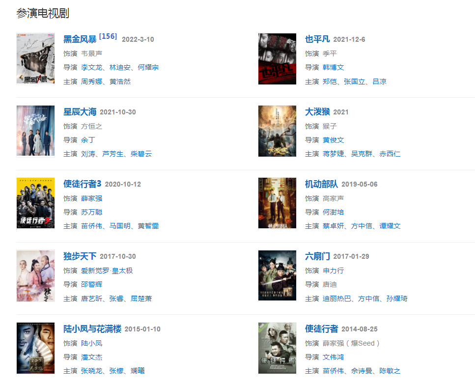 2020年主演電影《倚天屠龍記》和都市情感創(chuàng)業(yè)劇《星辰大?!?。
