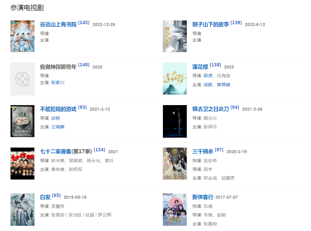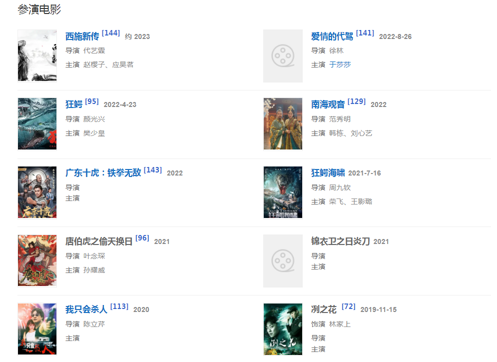 2022年,參演電影《廣東十虎:鐵拳無敵》上映;12月26日,參演電視劇《谷遠(yuǎn)山上有書院》播出。