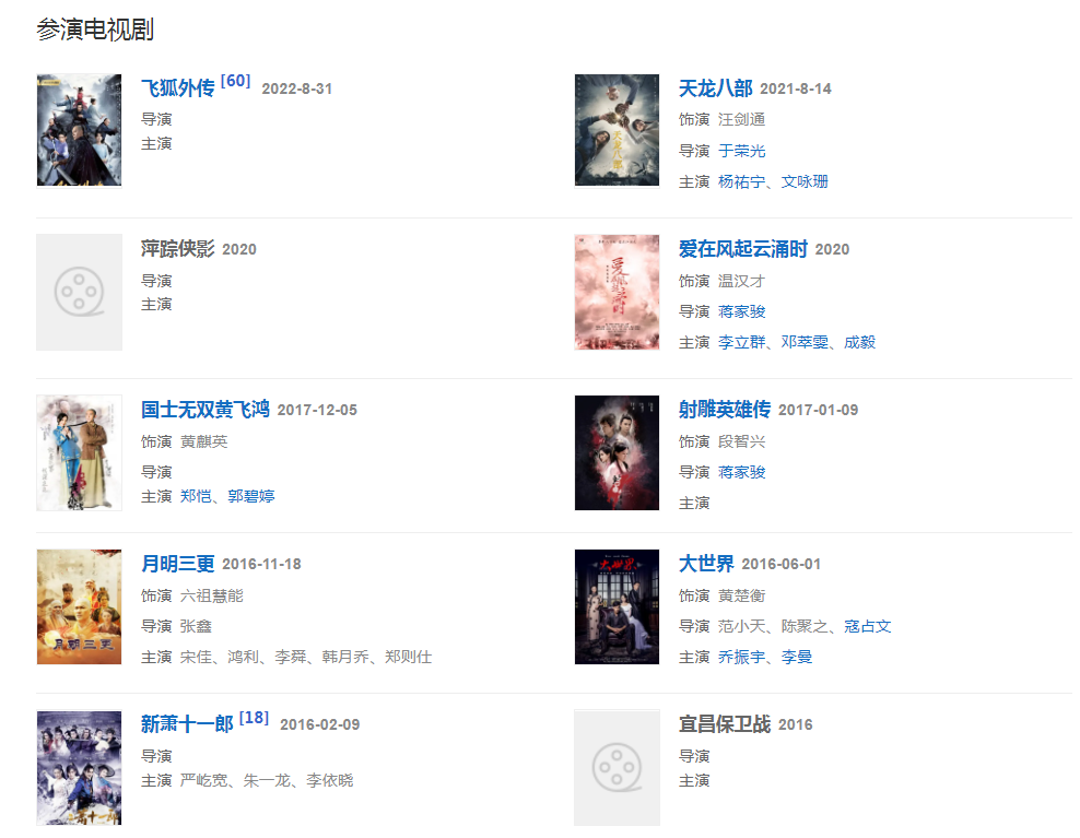 2023年1月4日,參演的《天龍八部之喬峰傳》發(fā)布“英雄”版預(yù)告,影片預(yù)計(jì)今年上線視頻平臺。
