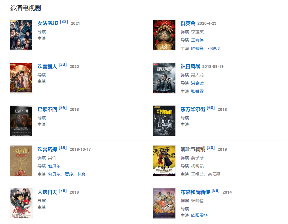 代表作品:《蝙蝠別墅》、《重案組》,《大話西游》《國(guó)產(chǎn)凌凌漆》