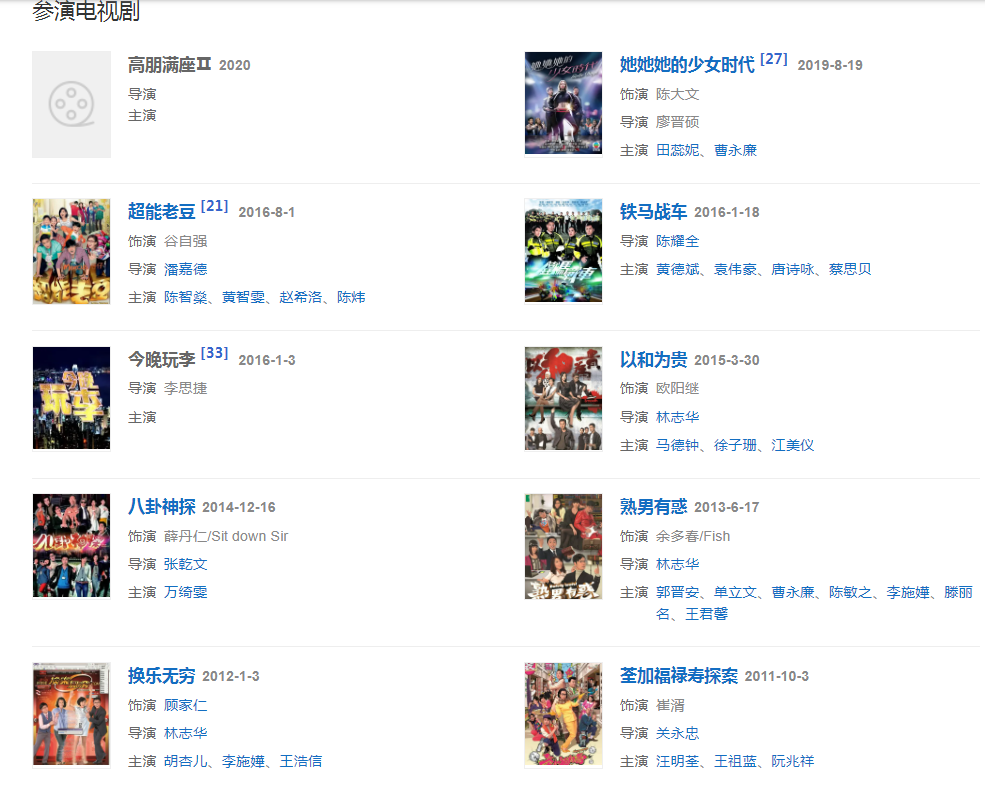 代表作品:荃加福祿壽、爭分奪秒、追魂交易、老婆大人