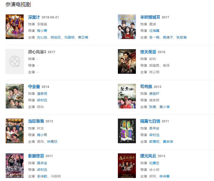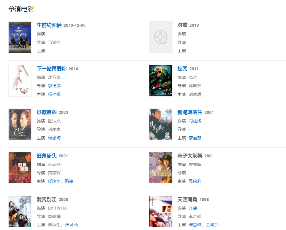 代表作品:鹿鼎記、洛神、突圍行動(dòng)、隔離七日情、鐵血保鏢、誘情轉(zhuǎn)駁、偶然·徐志摩