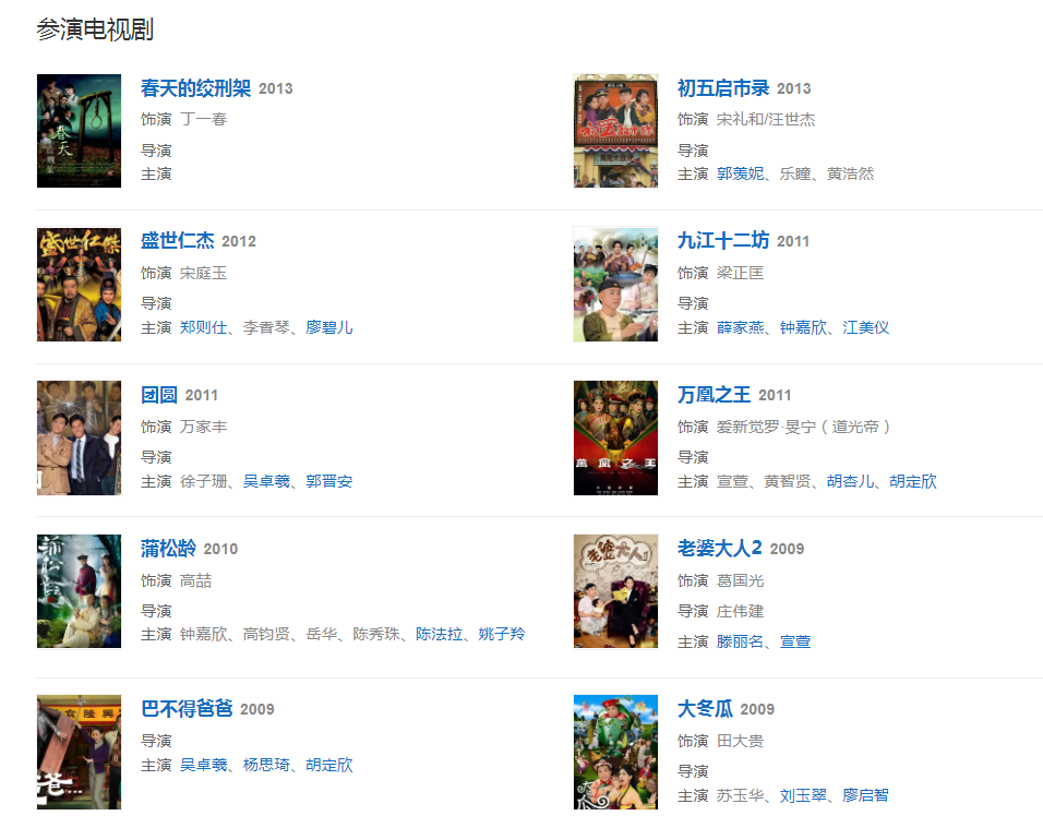 代表作品:《新上海灘》、《創(chuàng)世紀(jì)》、《老婆大人》、《婚內(nèi)情》、《心理心里有個(gè)謎》、《初五啟市錄》
