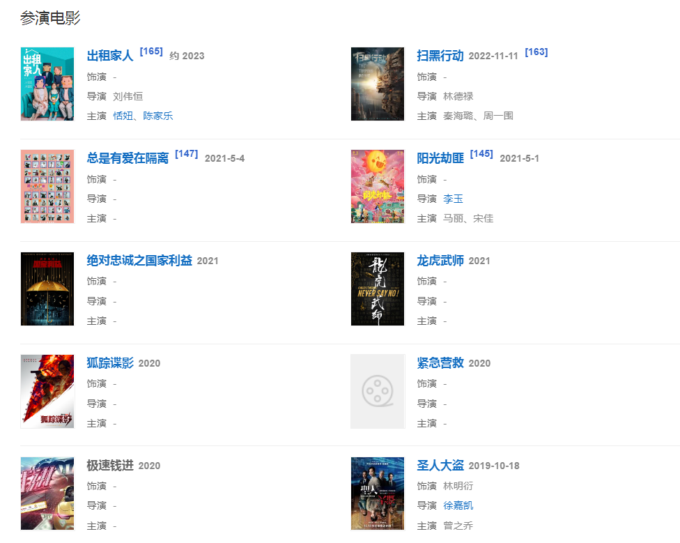 2020年9月28日,參演麥詠麟執(zhí)導(dǎo)的動作電影《龍虎斗》 。