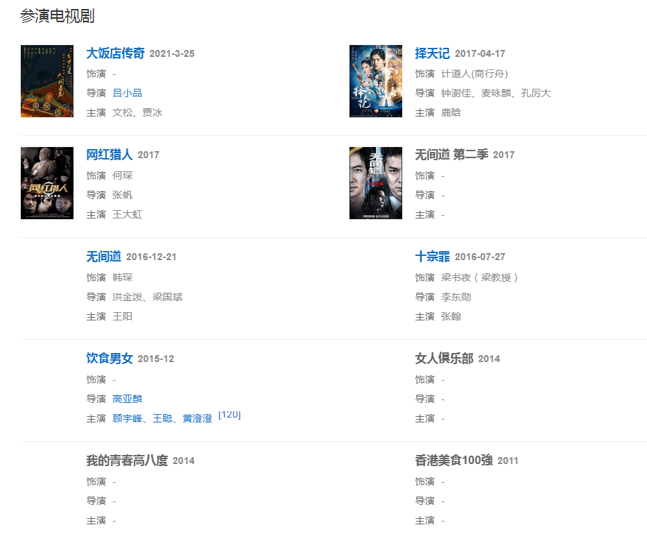 代表作品:哪吒、無間道、甜蜜蜜、三岔口、何方神圣、雙城故事、殺手之王、五福星撞鬼、臥虎、福星闖江湖、神通鄉(xiāng)巴佬、獎門人