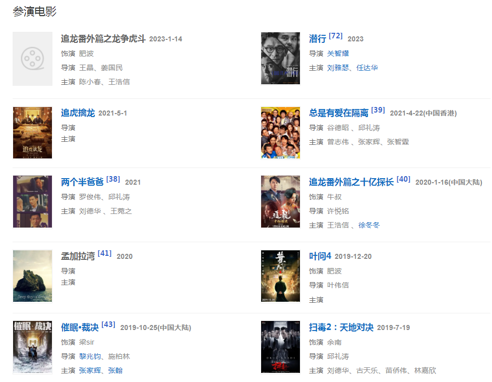 2023年1月14日,出演的動作電影《追龍番外篇之龍爭虎斗》在愛奇藝云影院獨家上映,在片中飾演肥波。12月29日,參演的電影《潛行》上映。