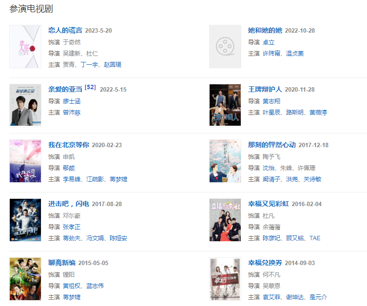 代表作品:終極三國(guó)、真愛趁現(xiàn)在、蘭陵王、新神探聯(lián)盟、真愛黑白配、屋頂上的綠寶石