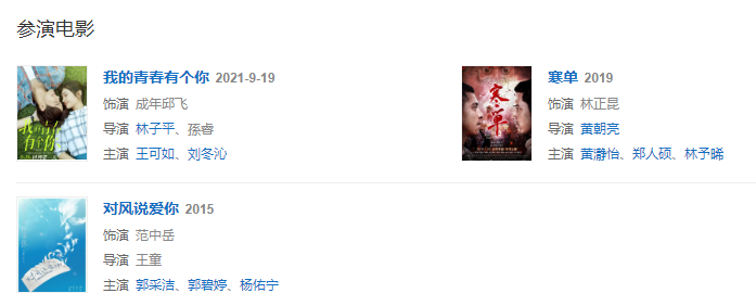 2019年,與鄭人碩、小薰(黃靜怡)合作主演電影《寒單》,一舉拿下了臺(tái)灣賀歲檔華語(yǔ)片票房的冠軍。