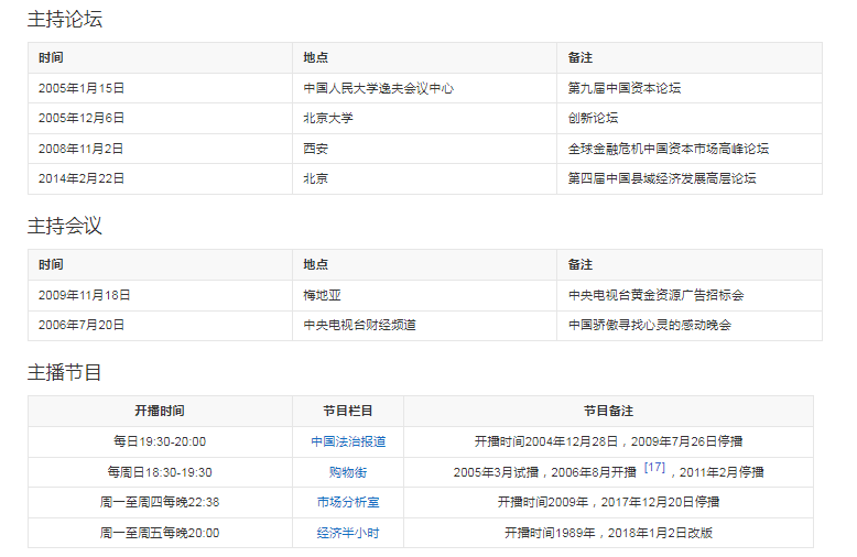 主持經(jīng)歷